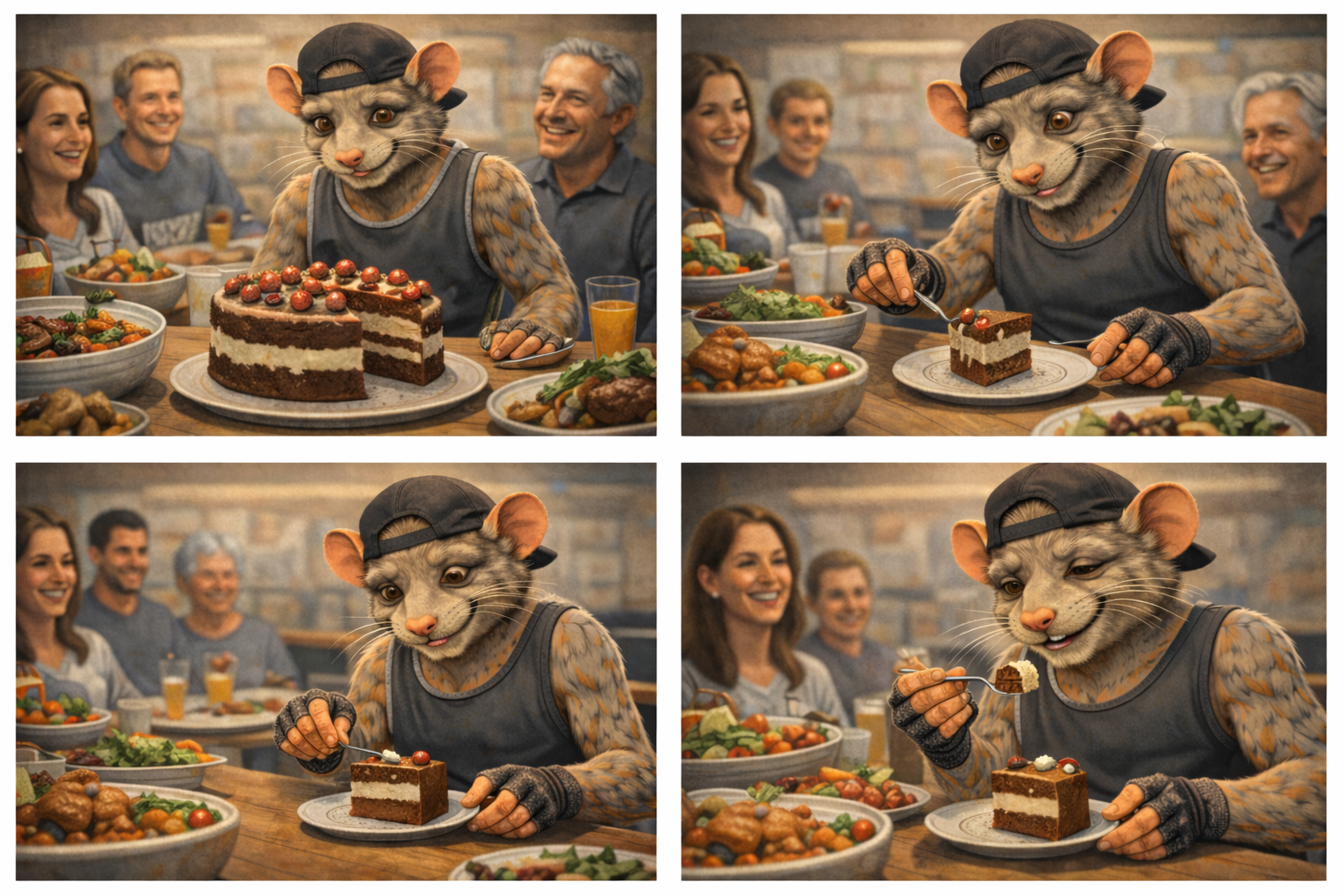 Osiedloszczur też siedzi przy stole.